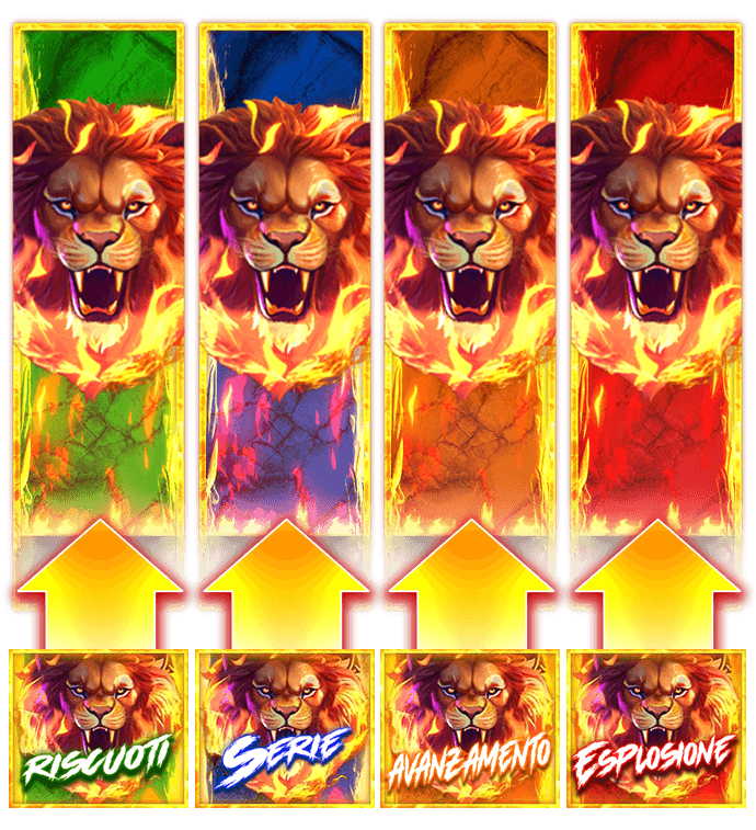 UNA VOLTA ATTIVATO, IL GIOCATORE PUÒ SCEGLIERE UN MASSIMO DI 5 LEONI D'ORO PER RIVELARE I MIGLIORAMENTI PRIMA DI ACCEDERE AL BONUS